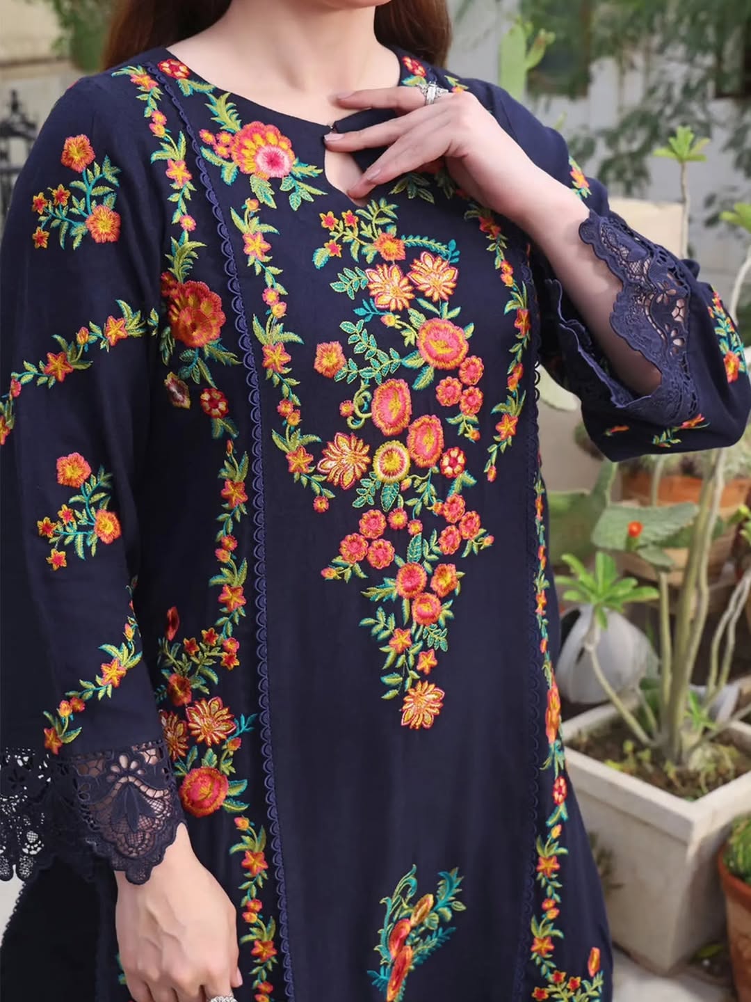 SLEEVES EMBROIDERED ON PREMIUM LAWN .