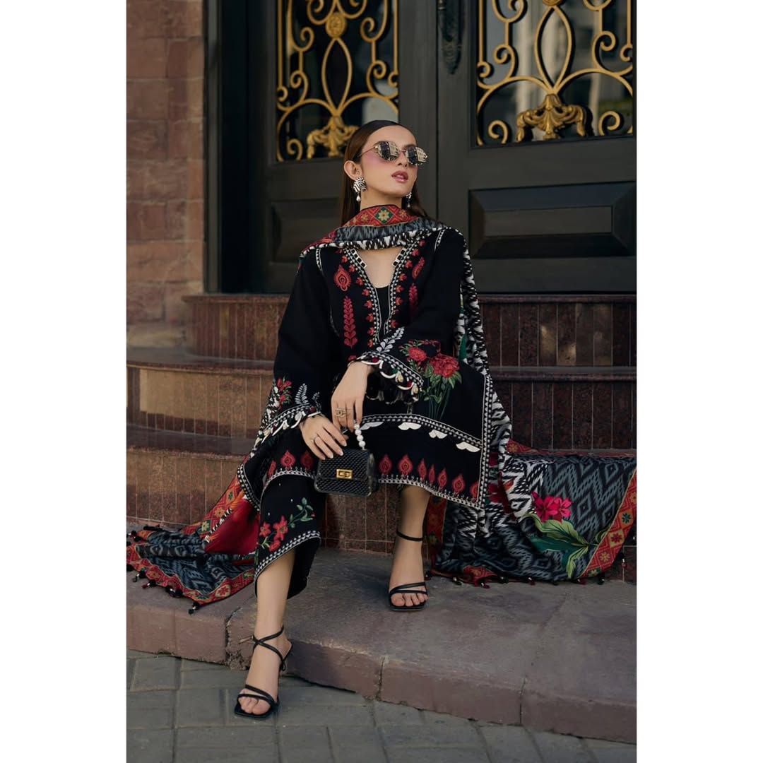 3 PIECE UN-STITCHED HEAVY EMBROIDERED PREMIUM LAWN DRESS.
